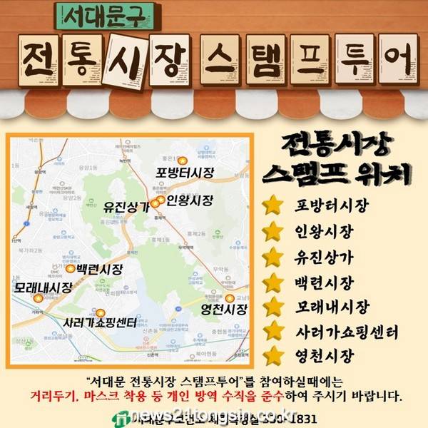 관내 7개의 시장(모래내, 백련, 사러가, 영천, 유진, 인왕, 포방터)을 방문하면 시장별로 1개의 온라인 스탬프 도장을 찍을 수 있고, 이를 5개 이상 모으면 역시 서울사랑상품권 추첨권을 받는다.