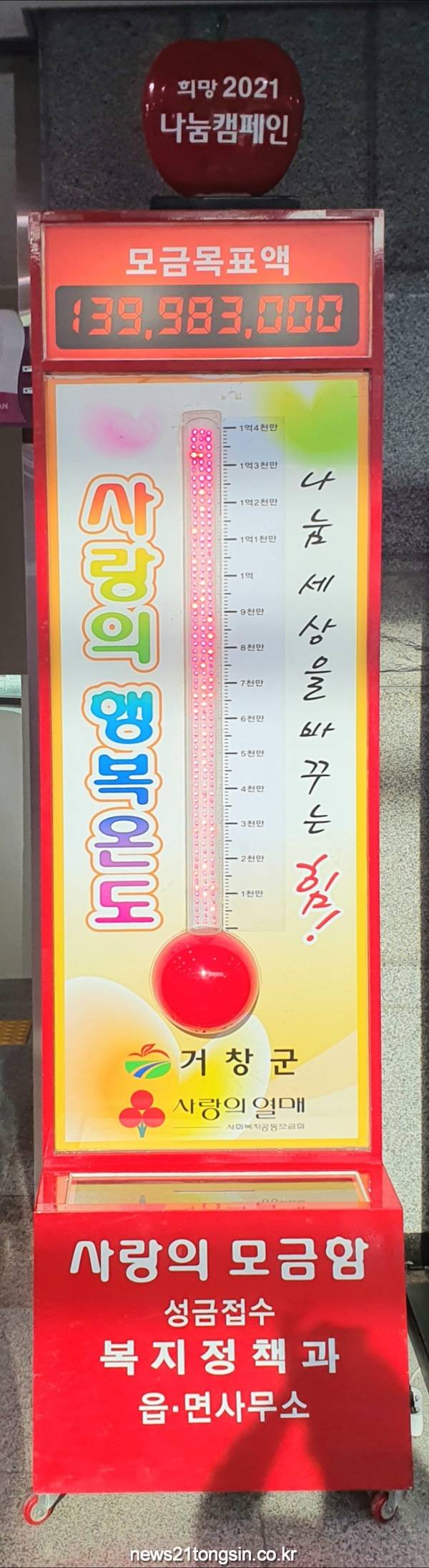 거창군 사랑의 온도탑이 2억 8백만 원을 넘기며 ‘희망2021 나눔 캠페인’이 훈훈하게 마무리됐다고 3일 전했다.