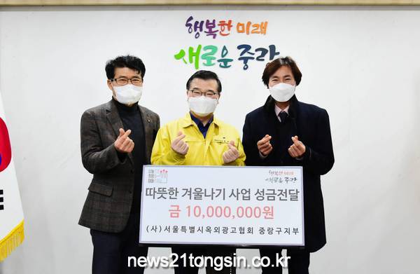 중랑구(구청장 류경기)가 9일, (사)서울특별시옥외광고협회 중랑구지부로부터 ‘2021 희망온돌 따뜻한 겨울나기’ 성금 천만원을 전달받았다고 밝혔다.