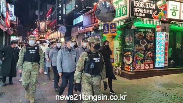 또 연휴기간 외출·외박 나온 주한미군들이 술집, 노래방 등에 출입하는 것을 집중 단속하고 주요 외국인 출입업소 11개소를 방문하여 방역수칙 준수 여부를 확인하였다.
