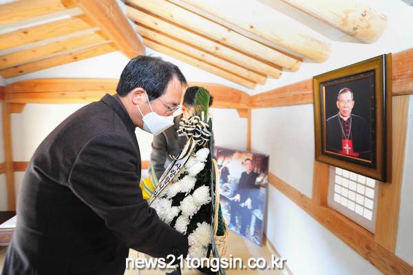 군위군은 16일 김수환 추기경 선종 12주기를 맞아 김기덕 군위군수 권한대행을 비롯한 주요 간부공무원 등 코로나19 사회적 거리두기로 최소 인원이 참석한 가운데 군위읍 용대리 김수환 추기경 생가에서 추모 참배행사를 가졌다.