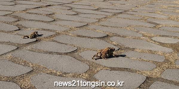 (대구=뉴스21통신) 유재원기자 = 15일 이른 새벽 수성구 욱수동 소재 망월지에서 두꺼비들이 산란을 위한 이동을 시작했다고 밝혔다.
