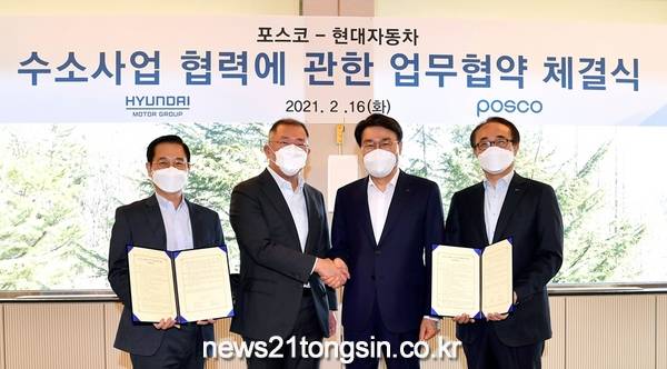 양사는 지속 가능한 세상을 만들기 위해 탄소중립 달성과 수소경제 전환이 필수 과제임을 인식하고 ▲수소에너지 활용 기술 개발 ▲포스코 제철소 운영차량 무공해 수소전기차로 전환 ▲수소 사업 공동 협력 등에 대해 합의했다.