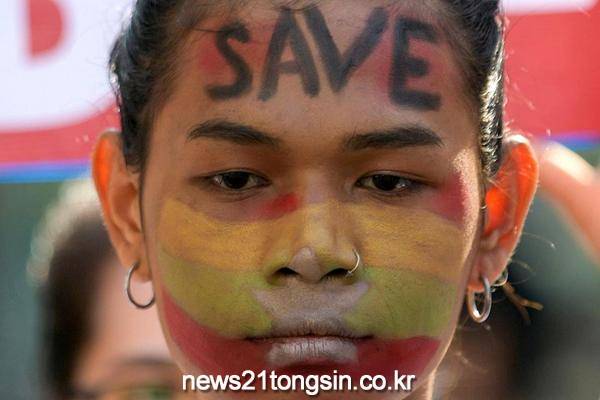 미얀마 군 정부의 쿠데타에 항의하기 위해 나선 시민