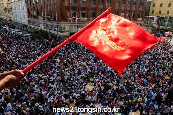 미얀마에서 쿠데타에 항의하는 대규모 시위가 주요 도시 곳곳에서 벌어졌다.