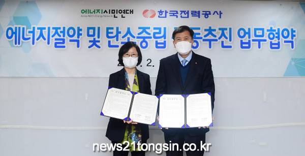 한국전력(대표이사 사장 김종갑)은 2월 19일 서울 중구 한전 경인 건설본부에서 국내 최대 규모의 에너지 전문 NGO 연대기구인 에너지시민연대(사무총장 홍혜란)와 ‘에너지절약 및 탄소중립 공동추진을 위한 업무협약’을 체결했다.