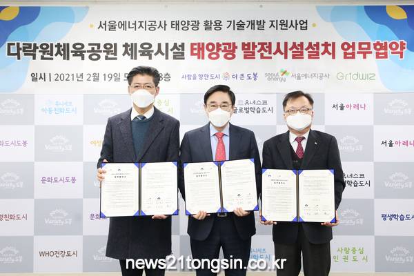 도봉구(구청장 이동진)은 2월 19일(금) 구청 소통협력실에서 서울에너지공사(사장 김중식), (주)그리드위즈(대표이사 김구환)와 ‘태양광 활용 기술개발 지원사업을 위한 업무협약’을 체결했다.