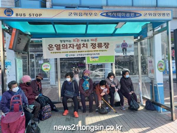 군위읍과 군위읍 남녀새마을지도자회는 지난 22일 버스정류장 2개소에 스마트 온열의자를 제작·설치하였다.