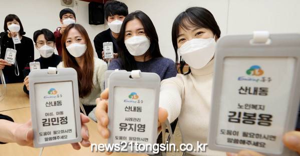 산내동은 기존 패용하던 공무원증을 대신하여 ‘친절약속 명찰’을 제작, 행정복지센터에서 근무하는 직원뿐만 아니라 행정도우미와 공익근무요원 모두가 명찰을 패용하여 근무 중이다.