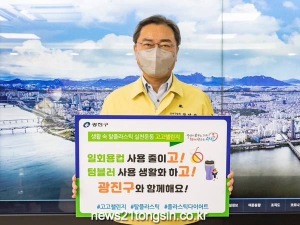 김선갑 광진구청장이 8일 일회용품과 플라스틱 줄이기 실천을 위한 ‘탈 플라스틱 고!고! 챌린지’에 동참했다.