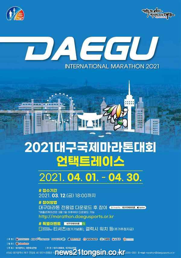 (대구=뉴스21통신) 유재원기자 = 대구시는 위드 코로나 시대에 엘리트와 마스터즈가 함께 참가하는 세계 최초의 언텍트레이스 국제마라톤대회를 개최한다.