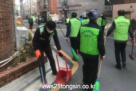 광진구 중곡1동주민센터가 10일 주민들과 함께 새봄맞이 대청소를 실시했다.