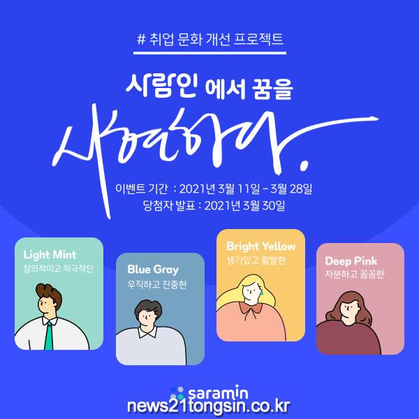 구인구직 매칭 플랫폼 사람인(www.saramin.co.kr 대표 김용환)은 취준생을 대상으로 ‘사람인에서 꿈을 시현하다’ 이벤트를 진행한다고 16일 밝혔다.