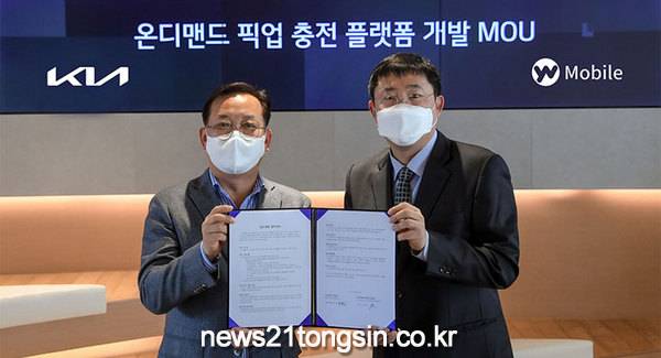기아와 YW모바일은 지난 16일(화) 기아 압구정 사옥 ‘BEAT360(서울시 강남구 소재)’에서 기아 판촉전략실장 오용진 상무, YW모바일 이영석 대표이사 등 주요 관계자들이 참석한 가운데 ‘온디맨드(on-demand, 수요자 요구 맞춤형) 픽업 충전 플랫폼 공동 개발을 위한 업무협약(MOU)’을 체결했다고 밝혔다.