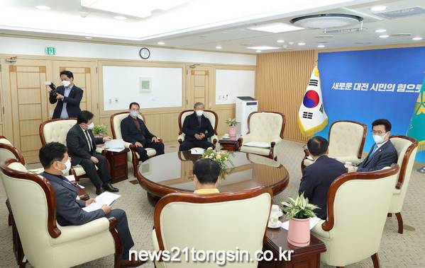 대전시는 18일 오후 지역건설업계 애로와 건의사항 청취를 위해 지역건설단체 회장들과 간담회를 개최했다.