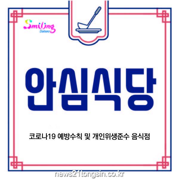 (대구=뉴스21통신) 박창남기자 = 코로나19 등 감염병에 취약한 식사문화를 개선하고 안전한 외식환경 조성을 위하여‘안심식당’지정업소를 대폭 확대한다.