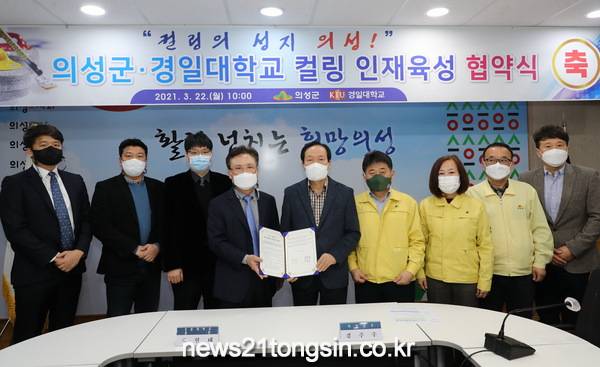 의성군은 22일 영상회의실에서 김주수 의성군수 및 경일대학교 총장이 참석한 가운데 의성군 컬링인재 육성을 위한 ‘의성군-경일대학교 간 업무 협약(MOU)’을 체결했다.