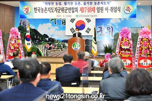 한국농촌지도자 군위군연합회는 23일 코로나19 방역지침을 준수하여 최소내빈 및 임원 40여 명만이 참석한 가운데 17·18대 이취임식을 개최했다.