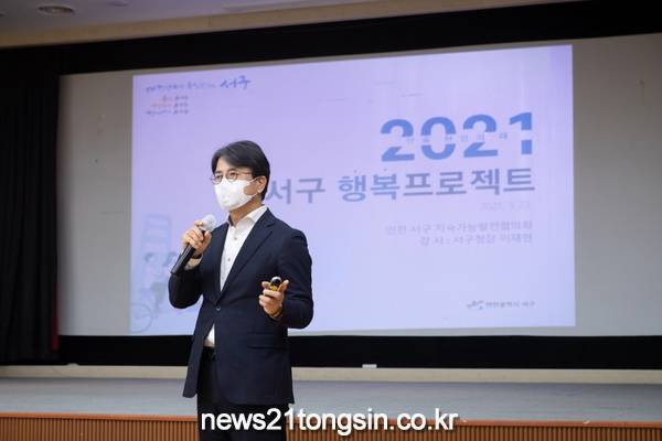개강식을 마친 후엔 지속가능발전대학 1강으로 이재현 서구청장이 ‘약속완성의 해 2021 행복프로젝트’를 주제로 강의를 진행했다.