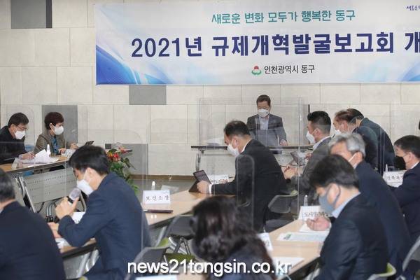 인천 동구(구청장 허인환)는 5일 코로나19 위기극복 및 지역경제 활성화를 위한 규제개혁 발굴보고회를 개최했다.