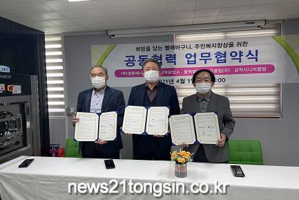 삼척시니어클럽(관장 김성래)에서는 지난 1일 “희망을 담는 빨래바구니” 사업장에서 ㈜경동에너지사업부 상덕광업소, 블랙밸리컨트리클럽과 취약계층에 대한 낡은 이불교체와 수도, 전등 수리 등의 생활환경개선을 위한 후원협약을 체결했다.
