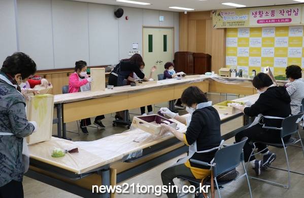「생활 소품 작업실」은 안동시장애인종합복지관 여성장애인 10명을 대상으로 실생활에 유용하게 사용할 수 있는 나무쟁반, 커피 보관함, 앤틱 티슈함, 화장대 만들기 체험 기회를 제공하고, 장애인의 자립심을 키우고 잠재적 역량을 강화할 수 있도록 돕고 있다.
