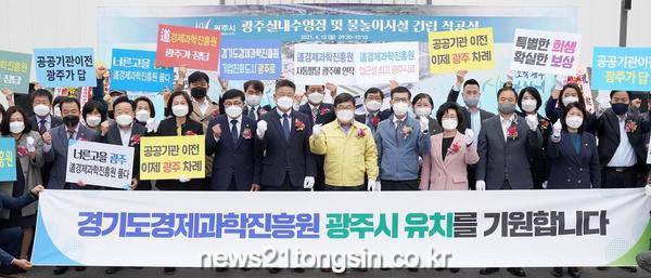 한편, 이날 시삽식 행사 후에는 경기도경제과학진흥원 광주시 유치 기원 결의대회를 열어 더욱 뜻깊은 자리가 됐다.