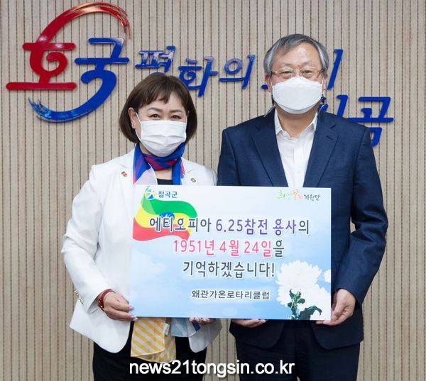 (경북=뉴스21통신) 유재원기자 = 왜관가온로타리클럽은 14일‘에티오피아 6.25참전 70주년 기념행사’에 사용해 달라며 후원금 100만 원을 칠곡군에 기탁했다.