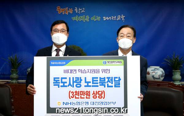 대전광역시교육청(교육감 설동호)은 4월 14일(수)에 NH농협은행 대전지역(영업본부장 김동수)로부터 3천만원 상당의 「학습용 노트북」을 기탁 받았다고 밝혔다.