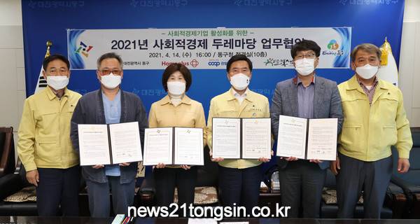 대전 동구(구청장 황인호)는 사회적경제 활성화를 위해 운영 중인 ‘사회적경제 두레마당’ 참여기관과의 업무협약을 체결했다고 15일 밝혔다.