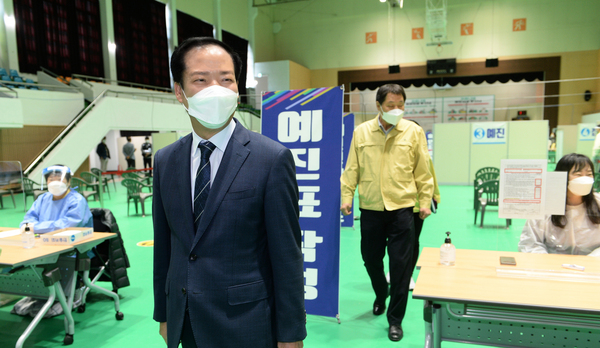 군은 안전한 접종환경 조성을 위해 하루 6시간 기준으로 30분마다 약 50명씩 시간대별 사전 예약자만 입장할 수 있도록 하고, 예방접종센터의 모든 구역마다 손 소독제 설치와 거리두기를 철저히 준수하고 있다.