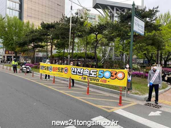 (대구-뉴스21통신) 유재원기자 = 4월 17일(토)부터 보행자 안전을 위해 도심 통행속도를 간선도로 50km/h, 이면도로 30km/h로 조정하는 ‘대구 안전속도 5030’이 본격 시행된다.