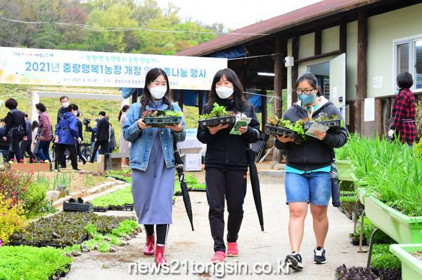 중랑구(구청장 류경기)는 16일 신내동에 위치한 중랑행복1농장의 문을 열고 중랑도시농업협동조합(이사장 이병준) 주최로 모종나눔 행사를 진행했다고 밝혔다.