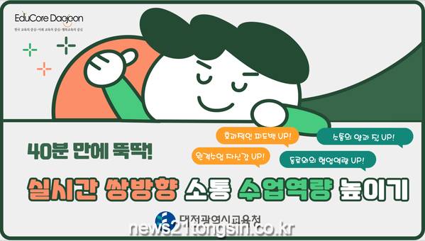 대전광역시교육청(교육감 설동호)은 코로나19 상황에 따른 원격수업 질 제고 지원을 위해 4월 20일부터 29일까지 「40분만에 뚝딱! 실시간 쌍방향 소통 수업역량 높이기」 특강을 운영한다고 밝혔다. 올해부터 대전 관내 초·중·고에서는 원격수업 시 실시간 쌍방향 수업 운영을 적극 실시하고, 공공학습관리시스템의 안정화에 따라 전면 확대할 예정이다. 이에 따라 현장에서는 실시간 쌍방향 소통 수업에 대한 전문적 역량 신장 지원의 필요성과 요구가 높아지고 있는 상황이다.