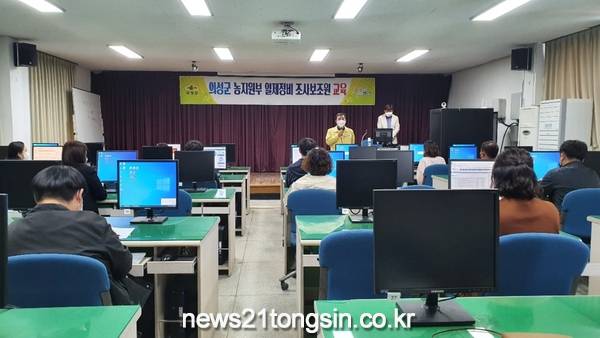 이번 교육은 한국농어촌공사 전문가를 강사로 초빙하여 이론과 실습을 병행 추진하였으며, 채용된 읍·면 조사보조원은 실제 농지원부 및 농지정보시스템 정비과정을 배워 실무 현장에 적용할 계획이다.