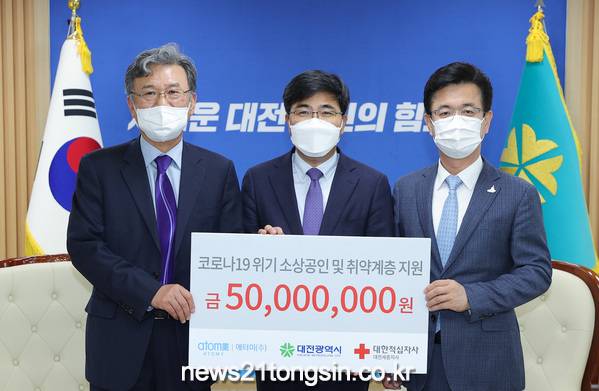 대전시는 애터미(회장 박한길)가 26일 오후 대전시청에서 ‘1004가 전달하는 든든한끼 도시락 릴레이 캠페인’4호 동참을 위해 성금 5천만원을 대한적십자사 대전세종지사에 기탁했다고 밝혔다.