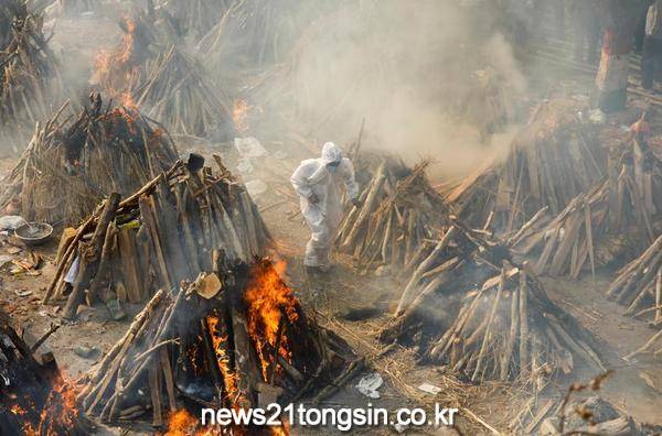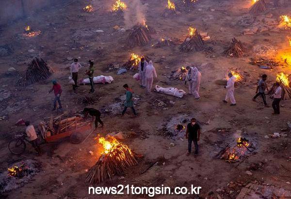 하루 확진 35만명 인도, 코로나19 사망자 대량 화장터