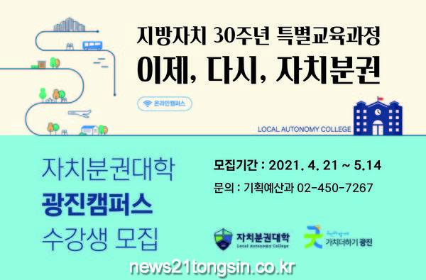 광진구(구청장 김선갑)가 올해 지방자치 부활 30주년을 맞아 ‘자치분권대학 광진캠퍼스 특별교육과정’을 운영한다.