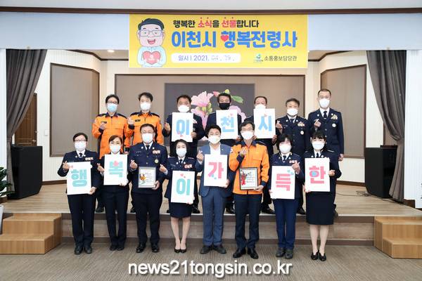 이에 엄태준 이천시장은 “이천 한익스프레스 물류센터 화재 당시 많은 분들께서 도움을 주셨지만, 그 중 맨 앞에 이천소방서와 이천시 의용소방대연합회가 있었다.”며 “오늘 행복전령사로 선정된 두 기관단체의 지역사랑에 감사드리며, 앞으로도 시민 모두가 행복한 이천을 만들기 위해 최선을 다하겠다”고 말했다.