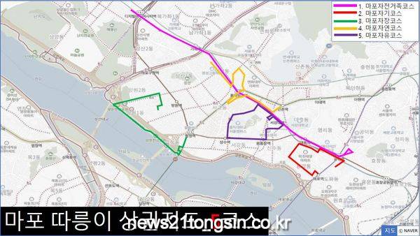 아울러 ▲‘자’전거와 고‘기’에서 글자를 딴 ‘마포자기코스’ ▲‘자’전거와 망원시‘장’에서 글자를 딴 ‘마포자장코스’ ▲‘자’전거와 ‘연’남에서 글자를 딴 ‘마포자연코스’ 등 총 5개의 코스명을 특색 있게 만들어 누구나 기억하기 쉽도록 했다.