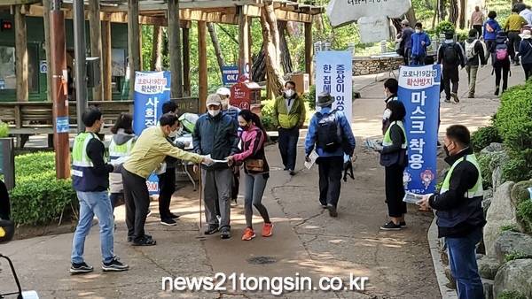 이에 구는 5일 광진구 재난극복 민간협의회와 구청 직원들이 함께 나들이객이 몰리는 어린이대공원 정문, 후문, 구의문과 아차산 입구 등 4개소에서 방역수칙 준수 캠페인을 펼쳤다.