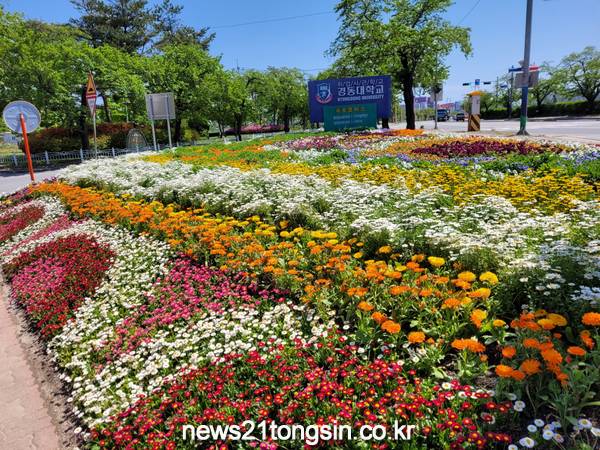 속초시가 시 관문인 설악해맞이공원 입구를 포함한 가로변 40개소의 봄꽃 식재 작업을 완료했다.