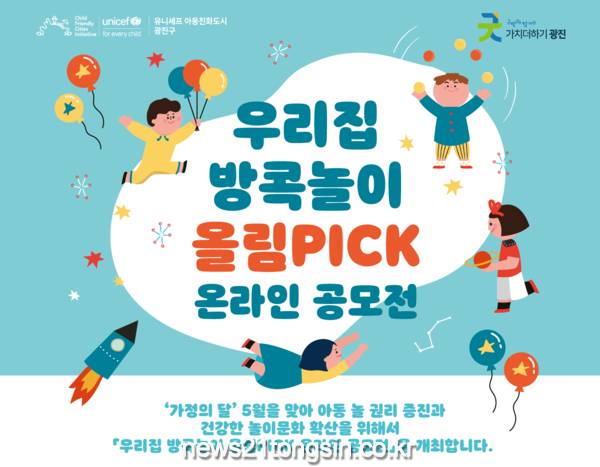 광진구(구청장 김선갑)가 가정의 달 5월을 맞아 17일까지 ‘우리집 방콕놀이 올림PICK 온라인 공모전’을 개최한다.