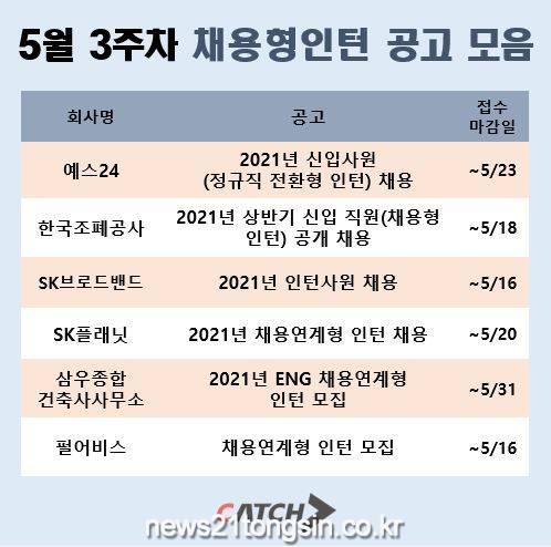 SK 플래닛이 2021년 채용연계형 인턴을 채용 중이다. 모집부문은 Engineering, Business, UX(Design) 부문이다. 전형 절차는 서류전형, 코딩테스트, 인터뷰, SKCT (심층역량검사), 인턴 합격자 발표, 6개월 인턴십 순으로 이뤄진다. 접수 기간은 5월 20일 목요일 오후 3시까지이며 당사 홈페이지에서 접수할 수 있다. 지원 자격으로는 ICT 기술과 서비스에 관심이 많은 사람들로, 22년 2월 이전 학사 이상 졸업 또는 졸업 예정자이다. 인턴십 종료 후 전환 심사를 통해 정규직 채용 여부가 최종 결정된다.