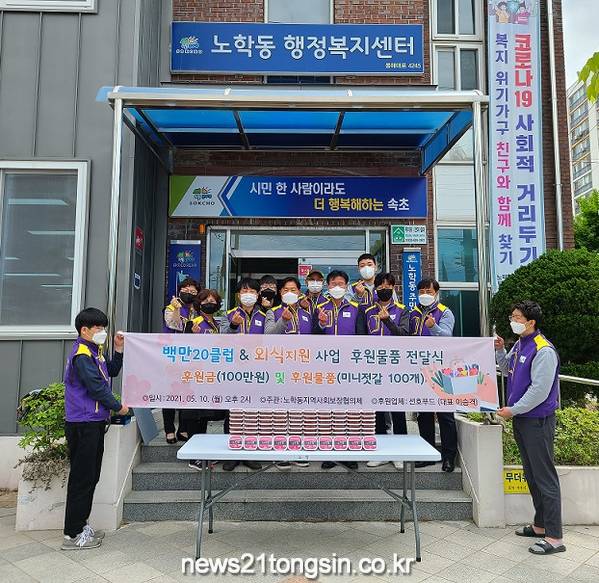 노학동 지역사회보장협의체(민간위원장 신오일, 공공위원장 노성호)는 10일 오후 2시 ㈜선호푸드(대표 이승격)의 후원으로 지역복지기금 및 외식지원사업 후원물품 전달식을 개최하였다.