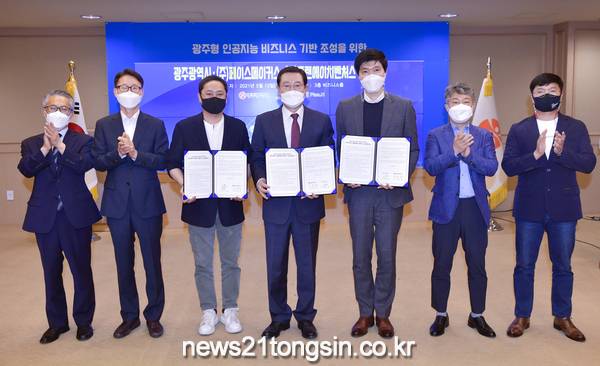 광주시는 12일 시청 비즈니스룸에서 이용섭 시장, 김경락 ㈜페이스메이커스 대표, 원한경 ㈜플랜에이치벤처스 대표 등이 참석한 가운데 90~91번째 ‘인공지능 산업 투자생태계 조성을 위한 업무협약’을 체결했다.