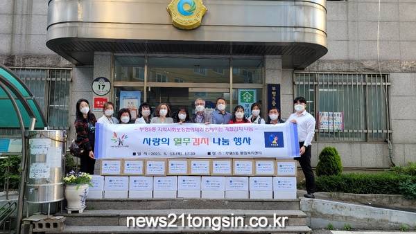 부평구 부평5동 지역사회보장협의체는 지난 13일 생계가 어려운 홀몸노인 등 지역 내 저소득 100가정에 열무김치를 지원했다.