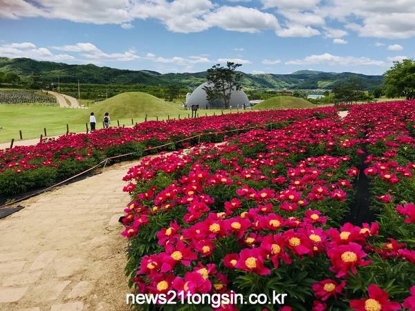 의성군은 이달 중순 경 조문국사적지에 작약꽃 구경을 오는 관광객 맞이에 최선을 다하고 있다.