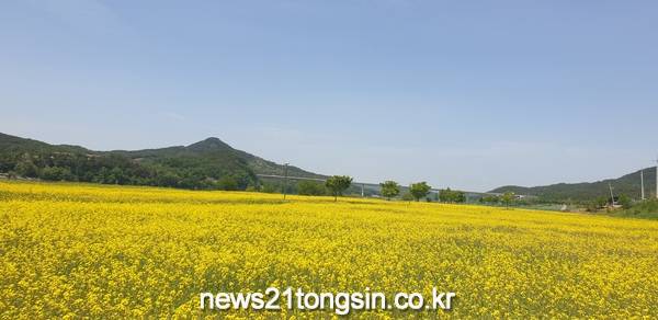 단밀면 낙동강 수변공원에 5월의 따뜻한 봄 햇살을 받은 유채꽃이 만발하여 코로나19로 인해 몸과 마음이 지친 사람들의 건강한 휴식처가 되고 있다.