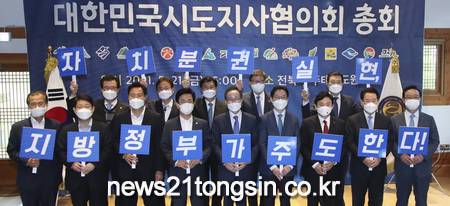 특히, 이날 총회에서는 코로나19가 장기화되고 지역경제의 어려움이 가중되는 반면 지방의 재정수요는 계속 증가하는 문제를 개선하고자 정부와 국회에 대해 「지방정부의 역할 강화 및 재정분권 추진을 위한 대한민국 시·도지사 공동성명서」를 채택했다. 공동성명서에는 지방세 비중 확대, 지방교부세율 상향, 국고보조금제도 개선 및 지방재정 건전성 강화를 제시한 국정과제 이행을 통해 지방의 자주재원을 대폭 확충하고 1단계 재정분권 추진에 따른 불이익 발생 문제를 조속히 해결할 것과 사회안전망 강화와 사회복지 재정수요 증가에 따른 지방재정 부담을 완화하고, 어르신들의 삶의 질 개선을 위해 기초연금 국비 부담률을 인상할 것, 지방일괄이양법과 자치경찰제 시행 및 재정분권과 연계한 중앙기능의 지방이양 등에 따른 합리적 재정지원 방안을 마련할 것, 지방 자주재원 확충을 통해 코로나19로 위축된 지역경제를 활성화시키고 지역 균형발전을 촉진할 수 있도록 관련 권한의 지방이양과 제도혁신을 추진할 것을 주요 내용으로 담았다.